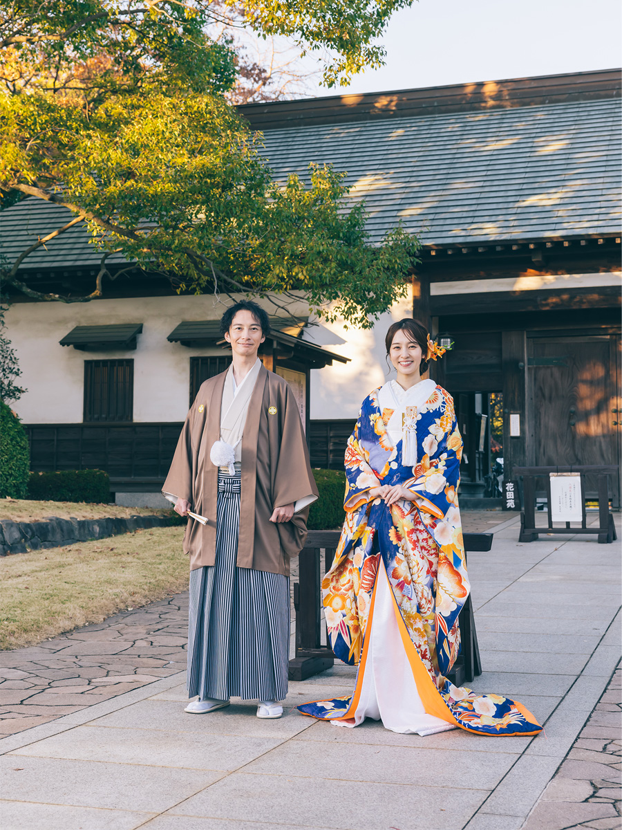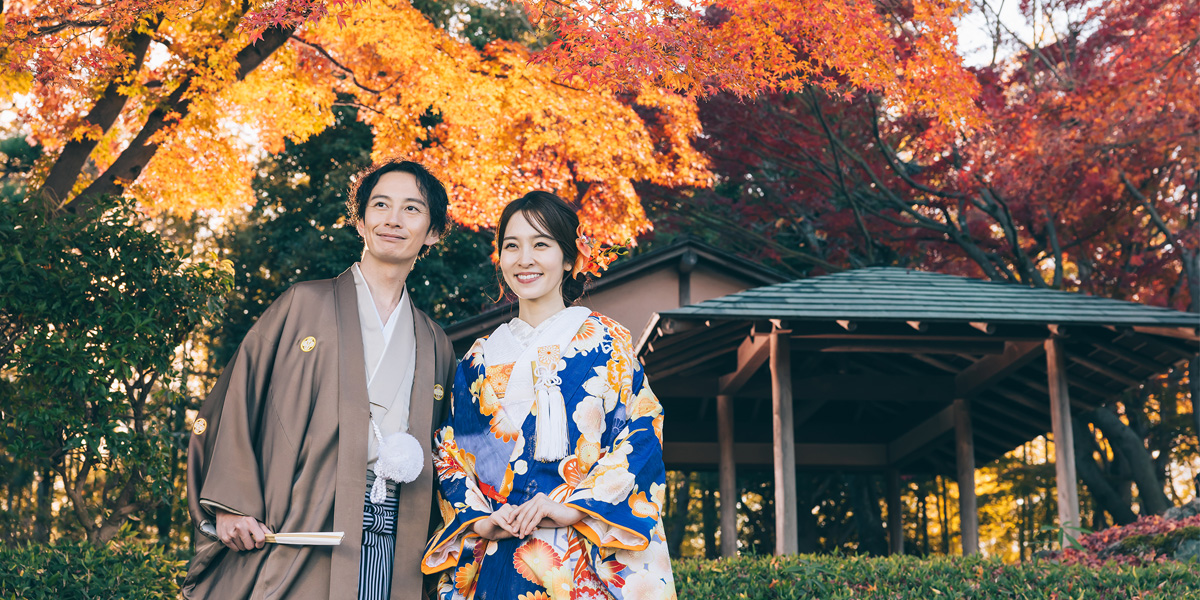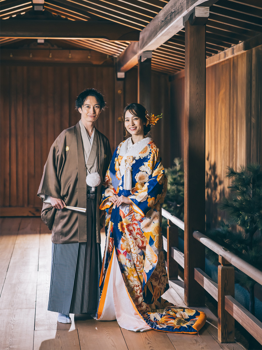 日本庭園を散歩するようにゆったり100カット以上撮影します。壮大な太鼓橋や京都嵯峨野を思わせる立派な竹林など魅力的な撮影スポットが満載。オプションで能楽堂での撮影も可能です。