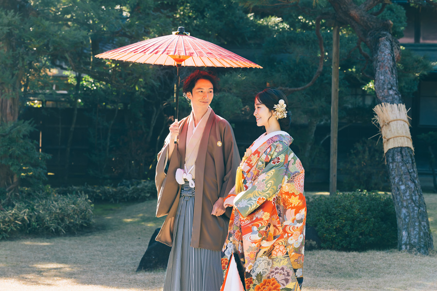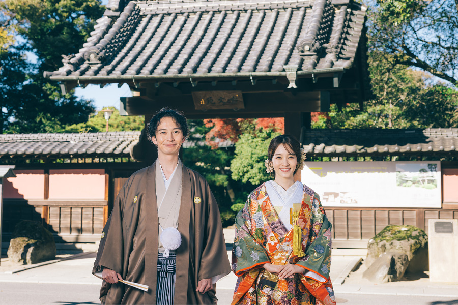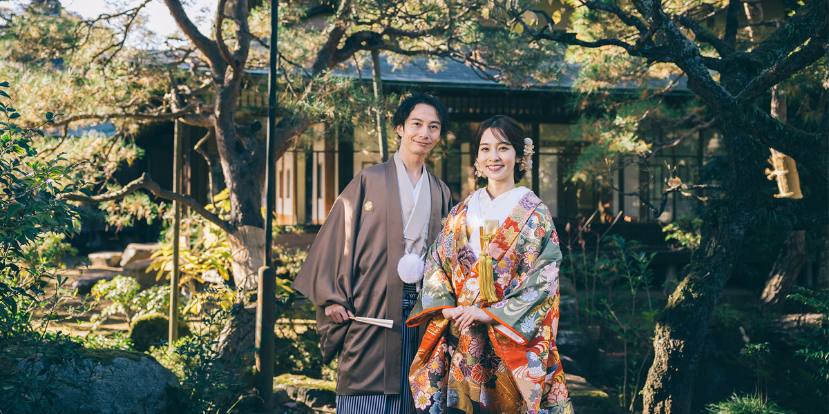趣のある純和風の家屋や美しい日本庭園で100カット以上撮影します。袴・打掛撮影が映えるスタッフ一押しのロケーションです。