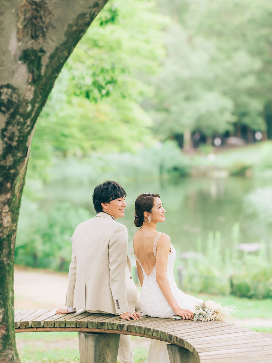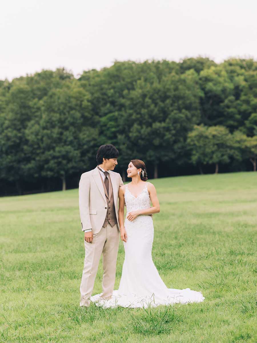 広大な緑豊かな風景が自然と調和した風景の中で100カット以上撮影します。開放的なロケーションで自然な表情を残せます。