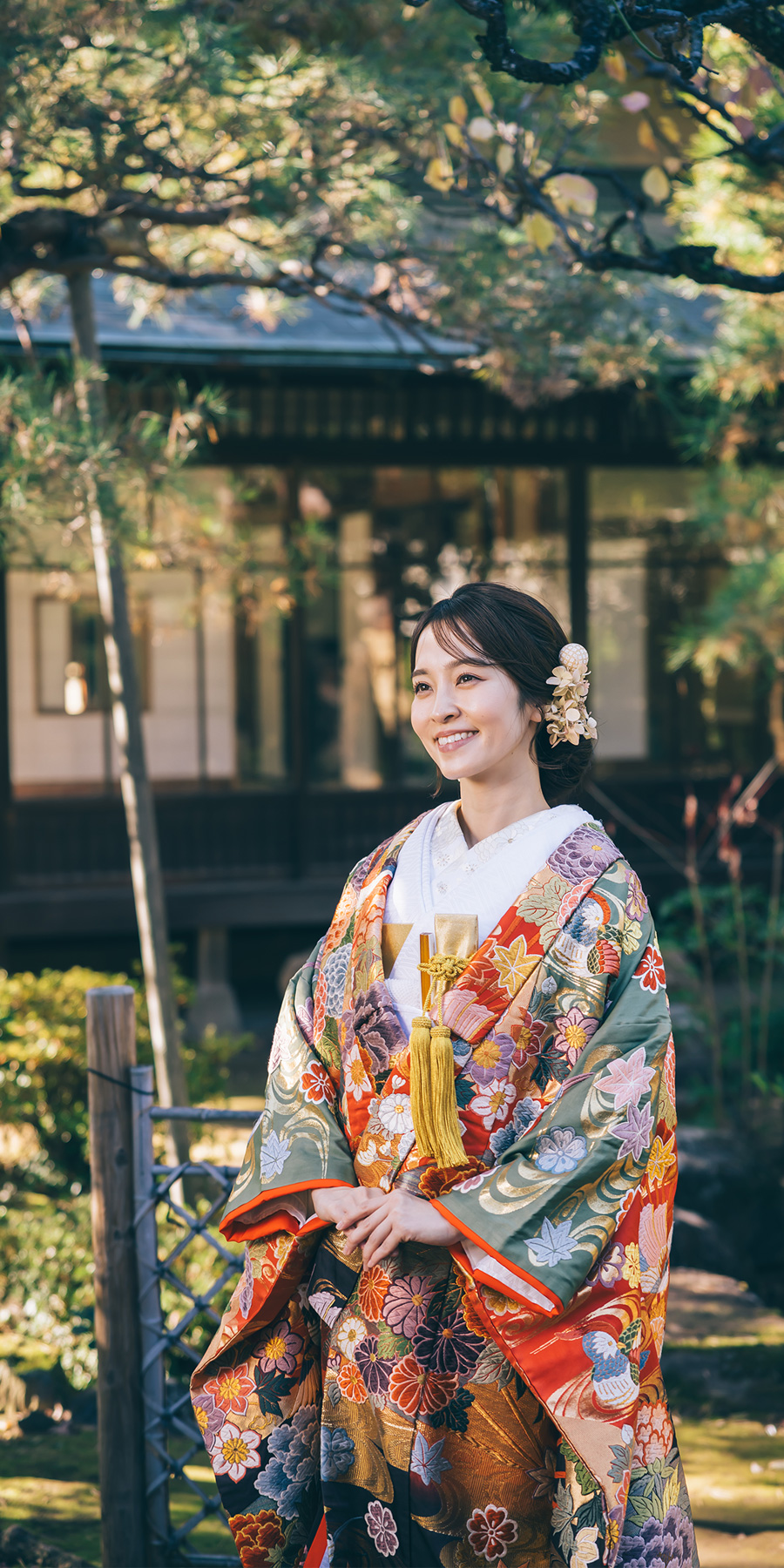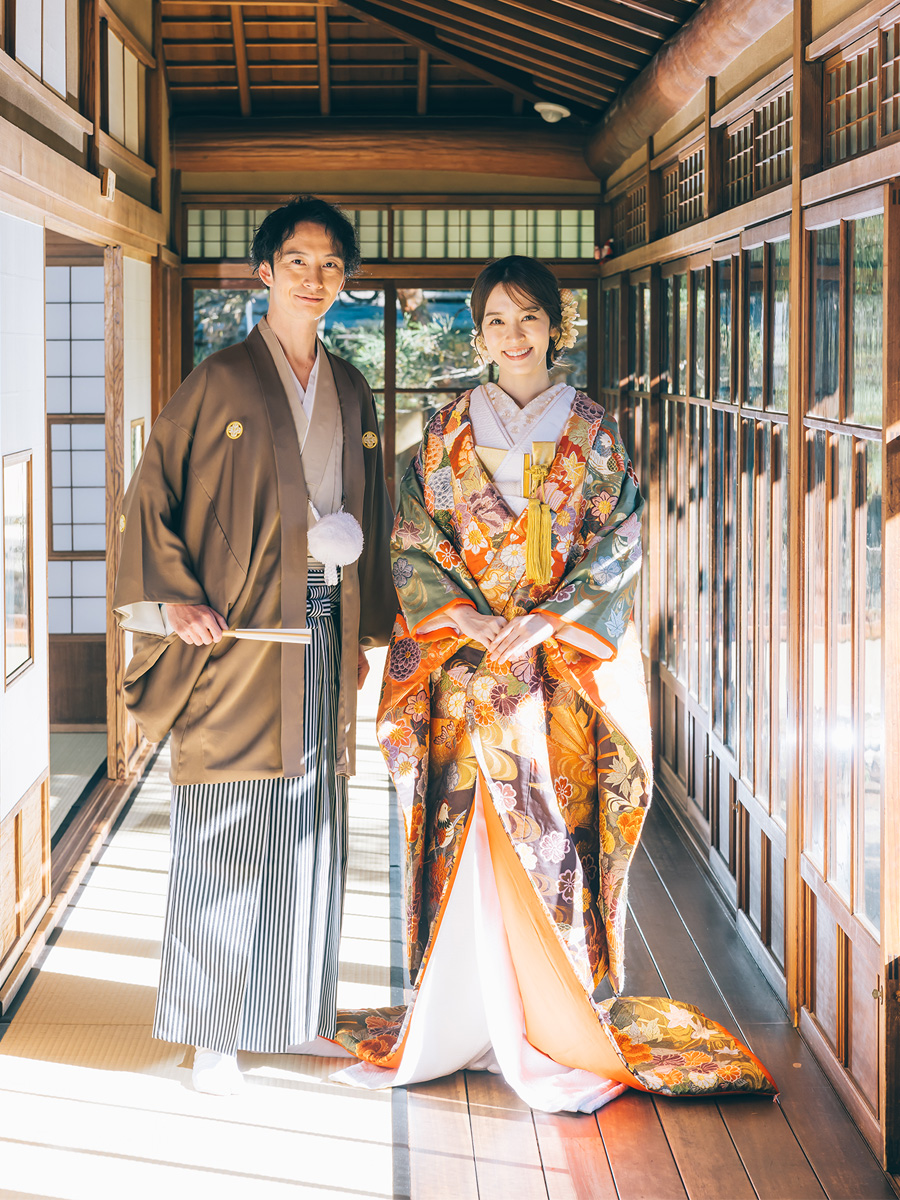 趣のある純和風の家屋や美しい日本庭園で100カット以上撮影します。袴・打掛撮影が映えるスタッフ一押しのロケーションです。