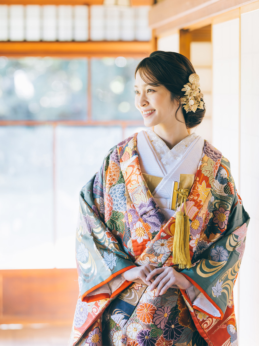 トラディショナルなデザインからトレンドラインまで色とりどりの白無垢・色打掛をご用意しました。