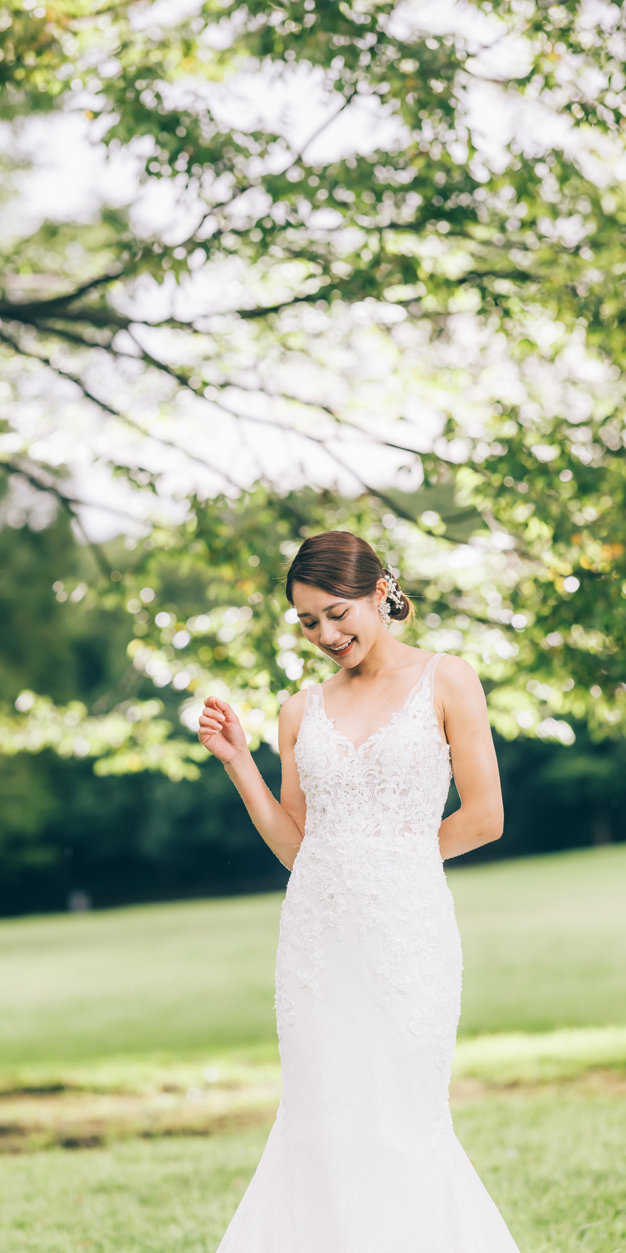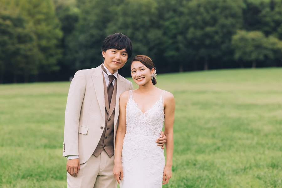 広大な緑豊かな風景が自然と調和した風景の中で100カット以上撮影します。開放的なロケーションで自然な表情を残せます。